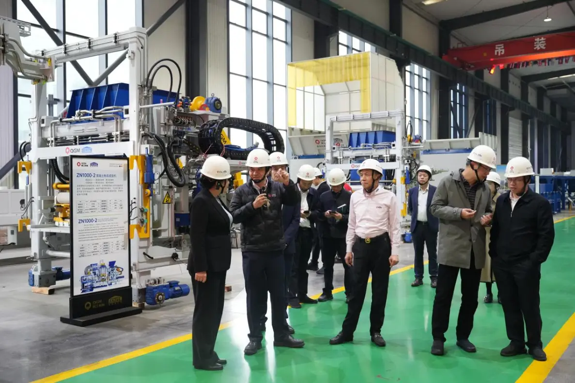 Under besøket besøkte Liu Min og hans delegasjon først utstillingshallen Quangong Machinery Co., Ltd. for å få en omfattende forståelse av selskapets utviklingshistorie, kjerneteknologisystem, globale markedsoppsett og innovative prestasjoner innen utstyr for grønne byggematerialer. Som en ledende bedrift innen byggematerialeutstyrsindustrien, har Quangong Machinery Co., Ltd. lenge fokusert på forskning og utvikling og produksjon av avansert utstyr for produksjon av murstein og komplette løsninger, og danner en systematisk layout og kontinuerlig innovasjonsevne innen intelligent produksjon, ressursutnyttelse av fast avfall og grønne byggematerialteknologiapplikasjoner.