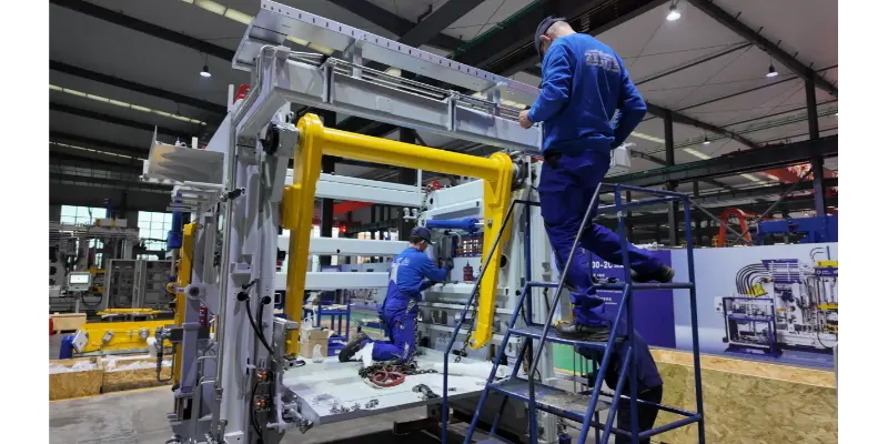 Ved produksjonslinjene tilQuangong Machinery Co., Ltd., brølet av maskiner og sterkt opplyste verksteder har blitt "normen" i det siste. Med kontinuerlig vekst i innenlandske og internasjonale bestillinger, har kunder fra hele verden økt kravene til utstyrskjøp. For å sikre rettidig levering av hver blokkstøpemaskin, lanserte Quangong Machinery Co., Ltd. raskt en "Spesiell handlingsplan for å garantere levering," med produksjon, teknologi, kvalitetsinspeksjon og logistikkavdelinger som samarbeider for å konkurrere mot tiden.