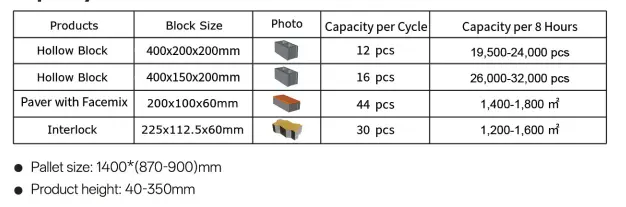 Utstyret produserer et bredt utvalg av hule mursteinsprodukter, som dekker flere funksjonstyper som vanlige blokker, dekorative blokker og isolasjonsblokker. Hullformer inkluderer firkantede og runde hull, og arrangementet kan oppnå enkeltrads-, dobbeltrads- og flerrads hullstrukturer. Ved å endre formen eller justere utstyrsparametrene, kan forskjellige typer mursteinsprodukter byttes fleksibelt for å møte ulike markedskrav.