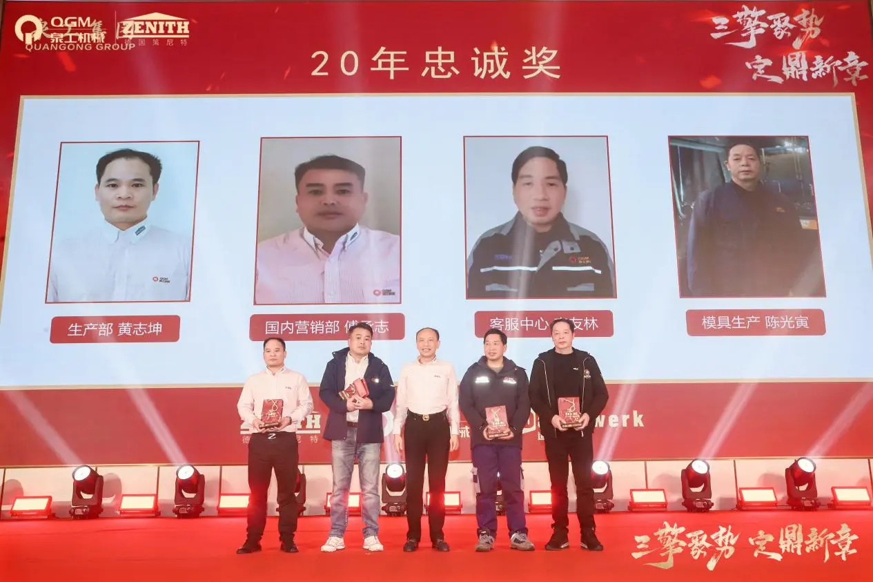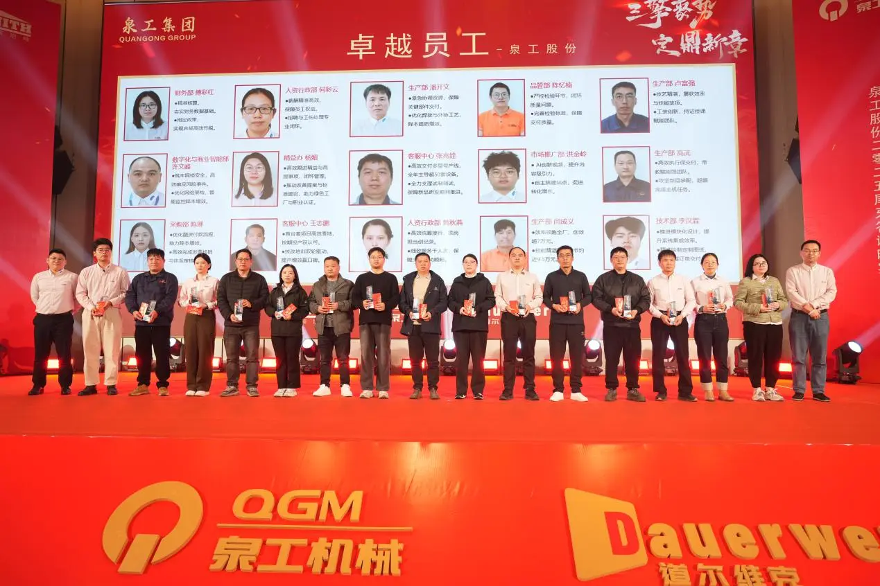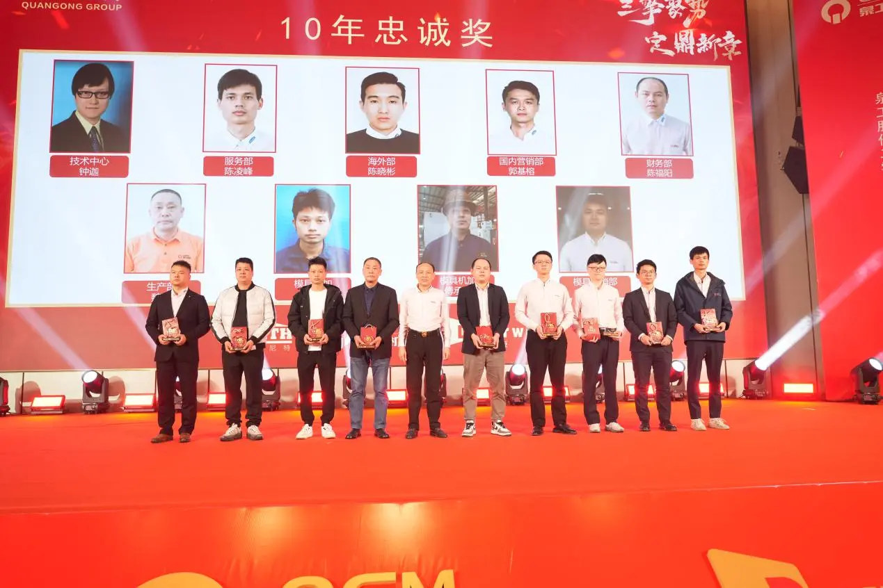 Under årsmøtet ble det også holdt en storslått prisutdeling for 10-års, 20-års og 30-års lojalitetspriser. En gruppe ansatte som har gått hånd i hånd med selskapet og vokst sammen, gikk på scenen, og demonstrerte fullt ut det solide grunnlaget for Quangong Machinery Co., Ltd.s jevne utvikling og dens varige bedriftskultur.