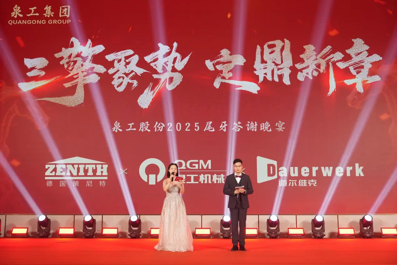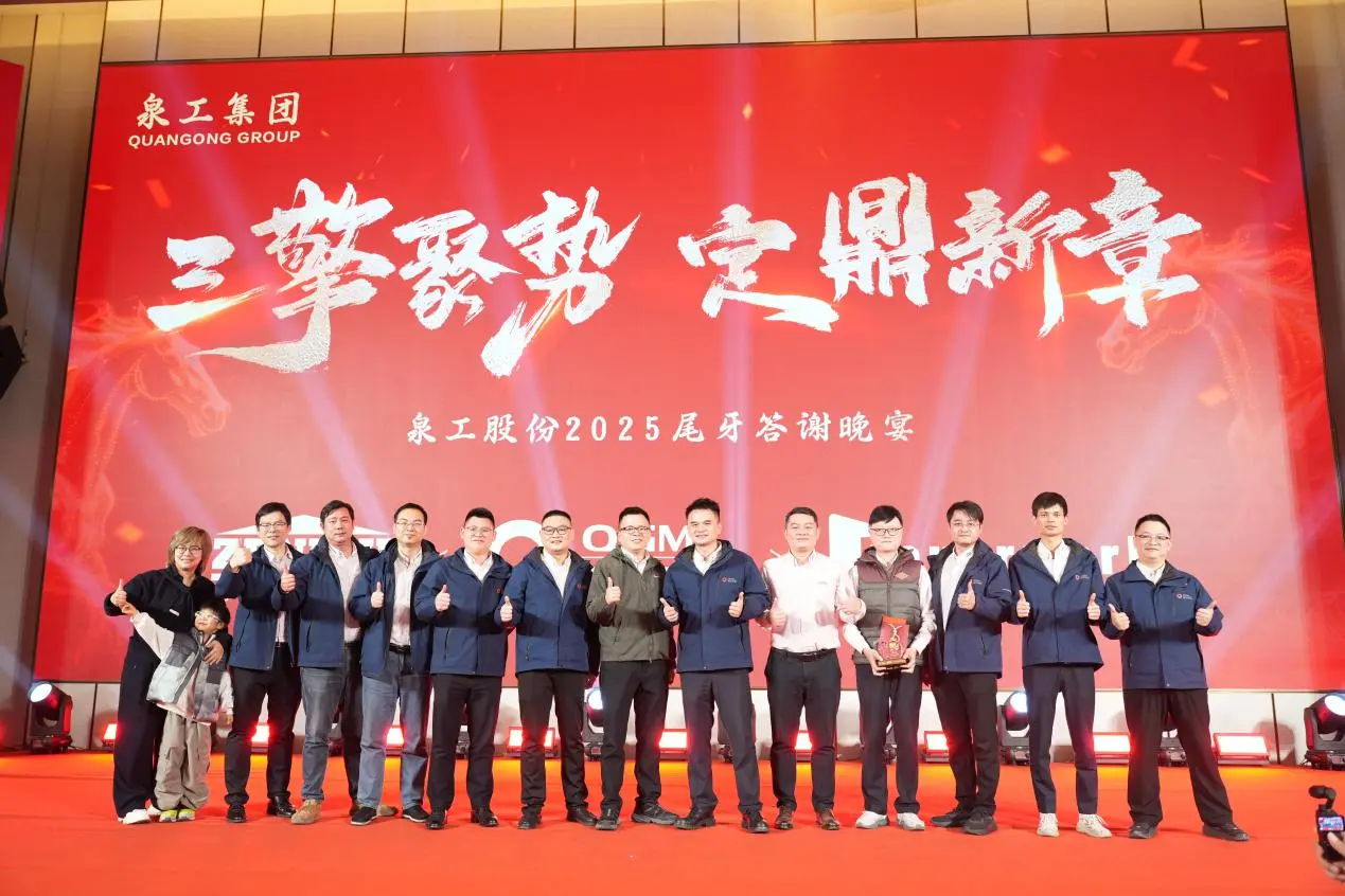 På ettermiddagen 3. februar,Fujian Quangong Machinery Co., Ltd.holdt sin årlige oppsummering og prisutdeling for 2025 og nyttårsfeiring på Quanzhou Donghai Honor Hotel, under temaet "Three Engines Converging, Setting a New Chapter." Bedriftsledere, nøkkelkunderepresentanter, alle ansatte og deres familier samlet seg for å gjennomgå reisen med hardt arbeid, dele utviklingsprestasjoner og se frem til en lys fremtid.