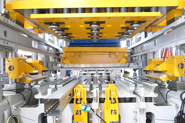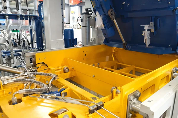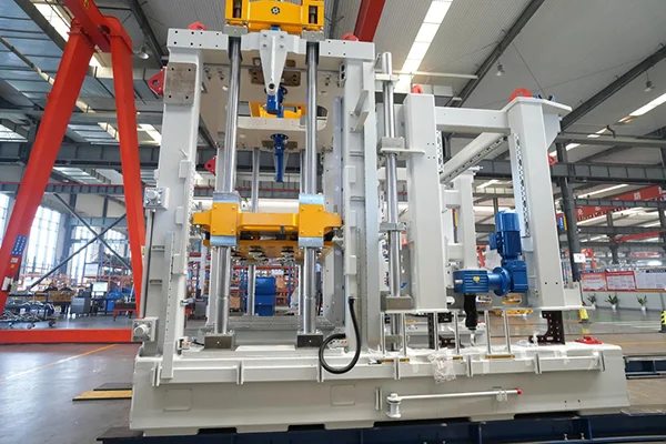 2Automatisk Quick Mold Change System Zeniths automatiske raske formskiftesystem er basert på koordinert drift av flere enheter, noe som muliggjør intelligent, rask og presis utskifting av form. Når formen er transportert ved siden av hovedmaskinen, plasseres den på formbytteenheten ved hjelp av et løftesystem. Systemet fullfører automatisk formbytteprosessen uten manuell håndtering, posisjonering eller låsing.