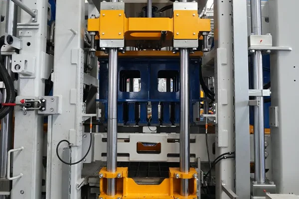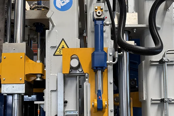 7Trykk på Hodelåseenhet Denne mekaniske låsemekanismen består av høyfaste låseblokker, et kileformet pressehode og dobbeltvirkende hydrauliske sylindre. Under avformingen driver sylindrene låseblokkene for å klemme pressehodet radielt, og danner en mekanisk blokkering. Formen frigjøres deretter under konstant trykk, noe som effektivt eliminerer elastisk tilbakeslag og mikrobevegelse – noe som sikrer skarpe mursteinskanter, glatte overflater og en sterkt forbedret produktkvalifiseringsgrad.